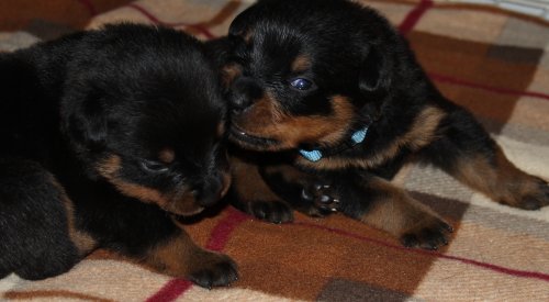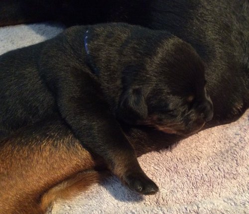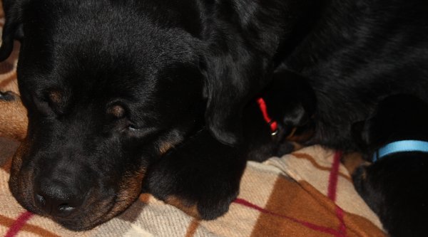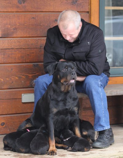Rumor and our wonderful dogsitter, Sean, the pups are happy and healthy.