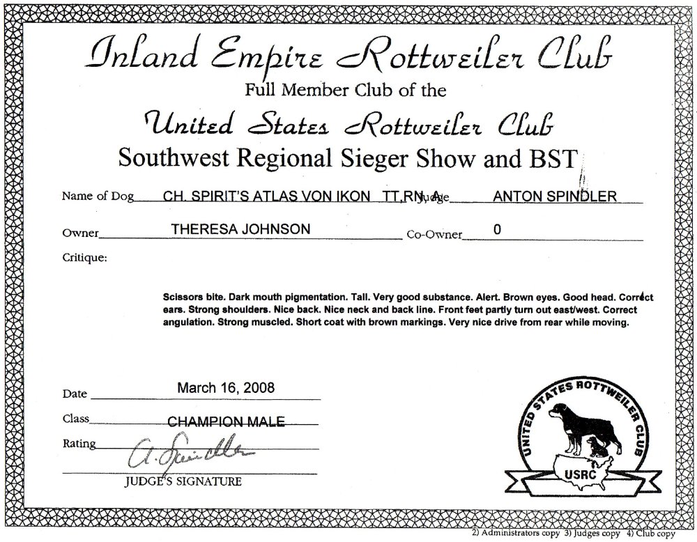 also won both his regular and sweepstakes classes at the 2004 ARC