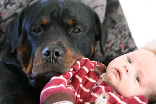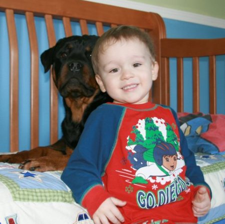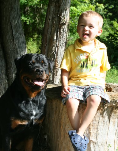 with Rottweilers, Ben & Sandy, and Jaiden (Below)