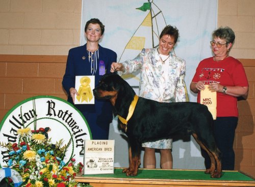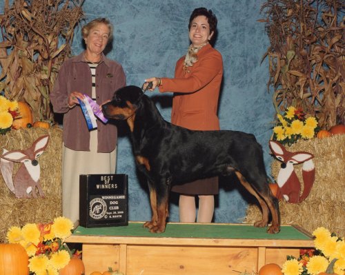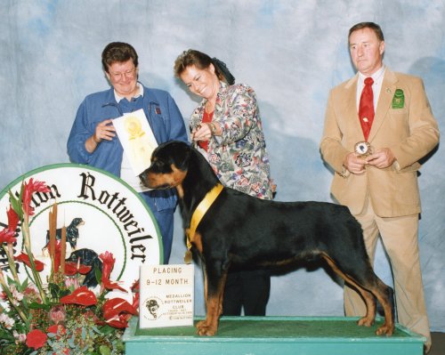 awarded Best Puppy at the Sovereign Rottweiler Club's 1999