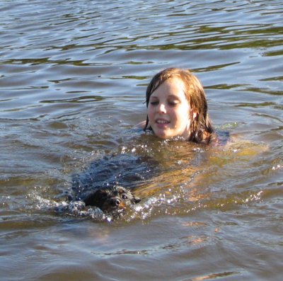 teaching Clare about the most important thing here at Esmond Rottweilers...swimming!!!