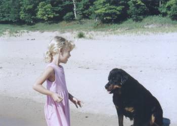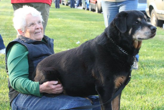 Rottweiler named Duck at a trial,