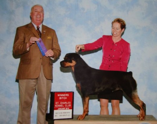 is shown, earning her first AKC point.