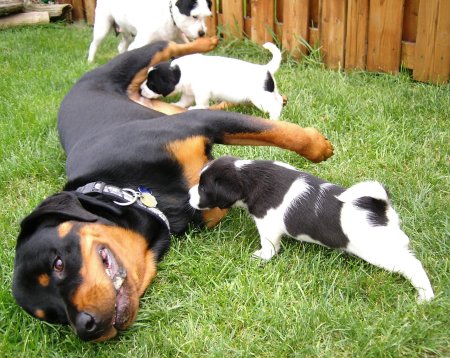 her new job as a puppy sitter!