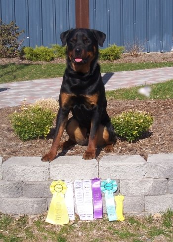 11.25.05 Miss Ann asked a while ago for an update to my blog(she already updated my page). I am SO tired but Mom says I should get on the stick!! Last weekend I did something called sheep herding. Those wooly things were a bit funny looking and I wanted to get a closer look. The lady in charge really seemed to like me. I was the only Rottie there-the rest were little dogs. I tried digging under and them thought about jumping over but my test jump showed the fence a bit too high. :( I listened to my Mom real good and she seems really happy with my work but metioned something about going into debt with the "boy's" new hobby. I'm guessin she's talkin about me. What are kids for?? Then yesterday Mom left me and my sister home with Uncle Oscar- we like him a lot. We rested while Mom and Dad went to Grandma and Grandpas house. They got home kinda late but bought us home leftovers so we didn't complain dinner was late! YUM!!! Today Mom took me and Aunt Lisa to a Laura Derret agility Fundementals seminar. It was fun! Mom says I did real good and it was a long day. It was from 9-4 and was a little over an hour away. The building was VERY cold but mom bought my crate in and put my thick bed in and covered it-I was nice and toasty. Mom wasn't though-they didn't tell her the building wasn't heated and it was 29 degrees today. I did everything Laura asked me to and I could tell she liked me!! We even stayed afterwards to get filmed for their new video on how to play with your dog. Some people don't appparently. I got filmed tugging with Mom. They wanted to show different breeds playing not Border Collies and Goldens and stuff. I was the only Rottie there and I was good most of the time. The woman lying on the floor(Mom doesn't know why -kinda freaked me out) She blended in with the floor mats and she moved real quick and scared me cause I didn't see her right away. I barked at her and Mom got my attention and got me working again. I was tired by that time but I tried to be good (and was) the rest of the day. Mom says anyone interested should go to this seminar cause it was a good learning experience. Sunday I have class in the park- Mom hopes it's warmer-WIMP!! Then Monday I have agility and Wednesday I have obedience. Ther are some agility matches and another workshop coming up. YAWN- Well I gotta to go to sleep-I'm REALLY tired from today!! Hope Miss Ann is okay with this edition of my blog. My mind is kinda fuzzy but I think I remembered everything!