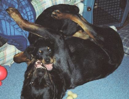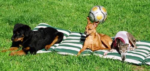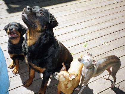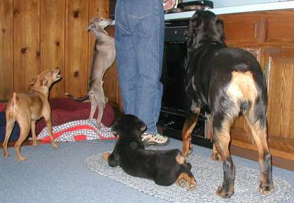 is Marcie, the Miniature Pincher, and Rizzo, the Italian Greyhound,