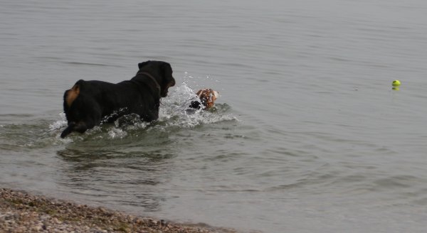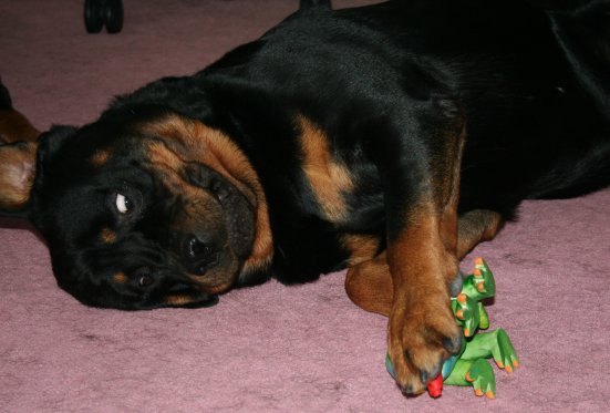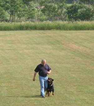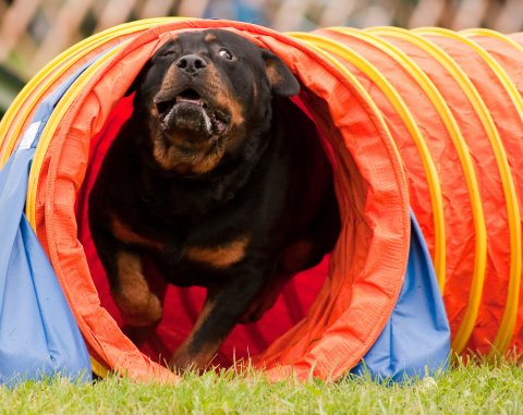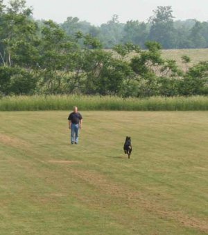the biggest Rottweiler out there running, but he sure is enjoying it!