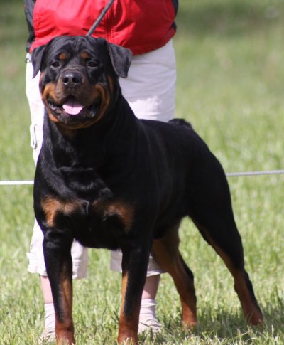 Good size. Well built. Attentive. Strong head. Ears correctly placed.
