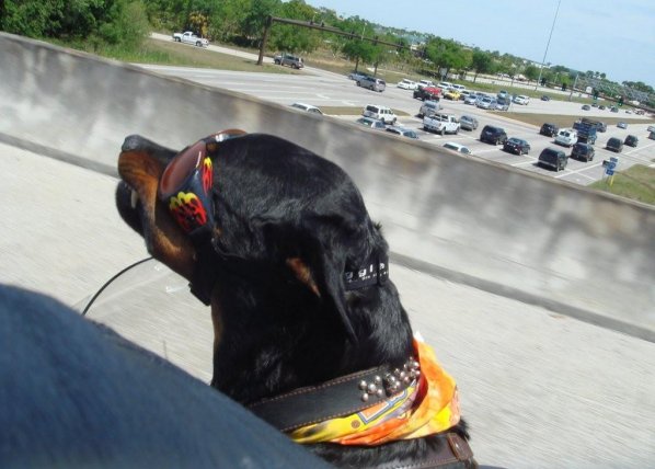 Rottweiler in a motorcycle sidecar going 50mph through Chicago looks like!