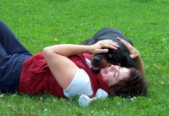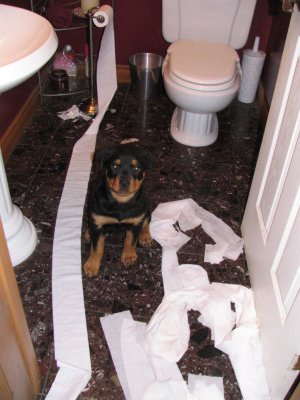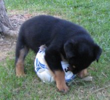 her "paw" at herding just after her first litter was born