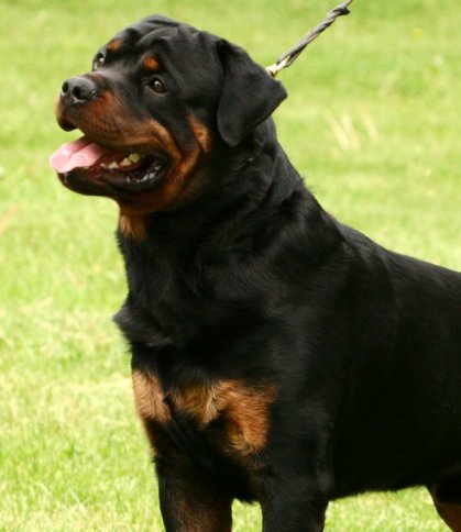 broad muzzle. Strong neck. Excellent topline. Tail is