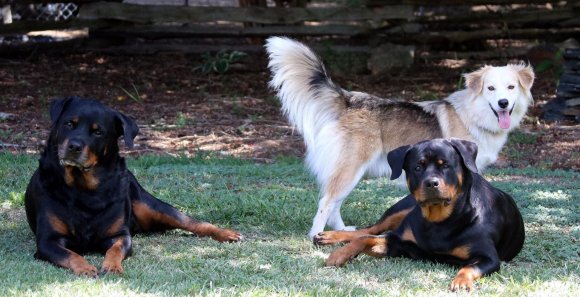 pool every day, bosses the Rottweilers and is plenty spoiled.