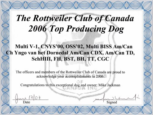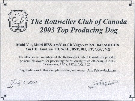 V-1, Sieger, Multi BISS Am/Can CH Yngo van het Dornedal