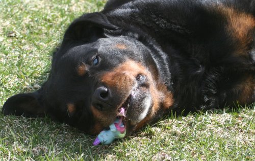 I was in the house anyway, I snuck one of the puppy toys outside.