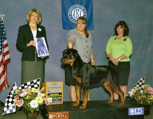 winning the 9-12 class at the 2009 Colonial Rottweiler Club Specialty!!!