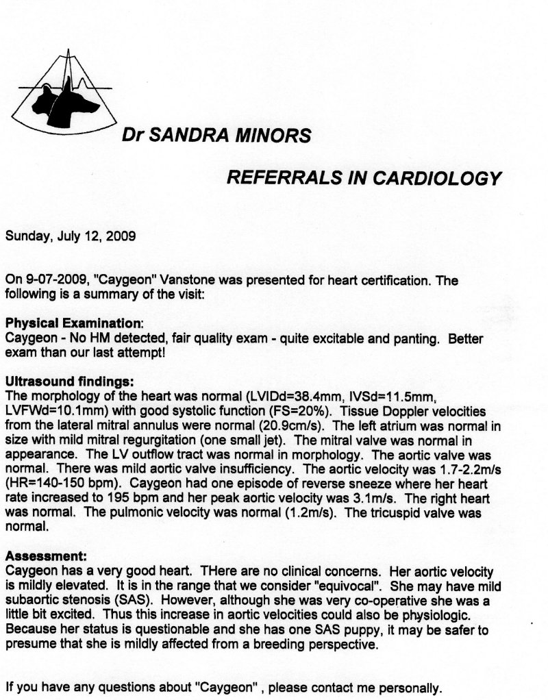 Chris and Bev for allowing us the opportunity to breed Caygeon!