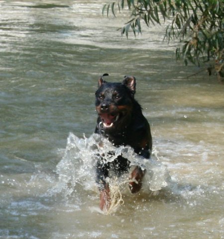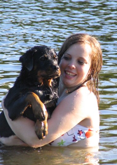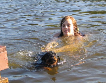 teaching Clare about the most important thing here at Esmond Rottweilers...swimming!!!