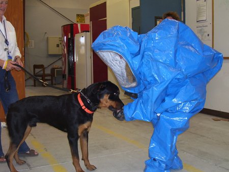 Dugan had many new experiences...like the person in the Hazmat suit!