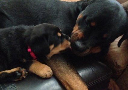 weeks old and out and about socializing with Easy.