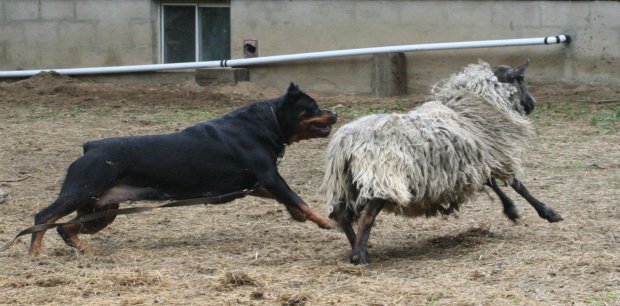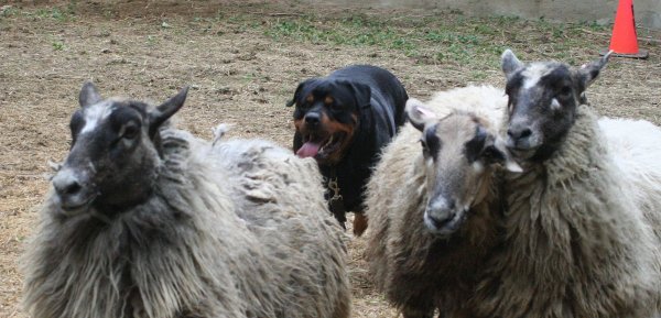 her "paw" at herding just after her first litter was born