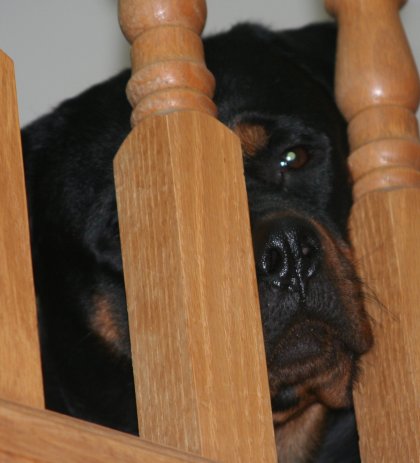 we can figure is that she climbed up onto her crate to get up there...