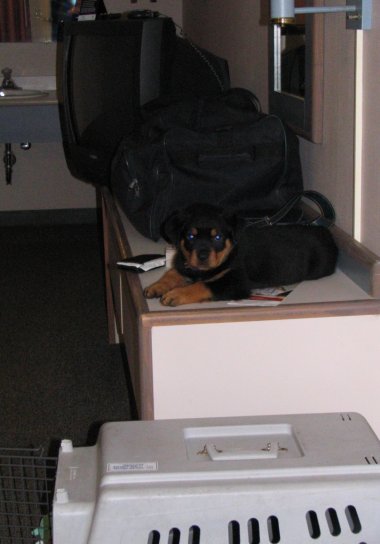 out of the van first and put her in the room so I could walk the big dogs.
