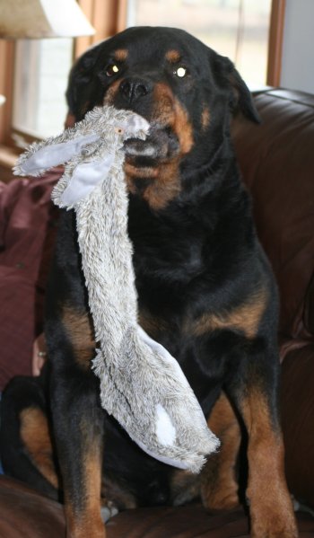 I was in the house anyway, I snuck one of the puppy toys outside.